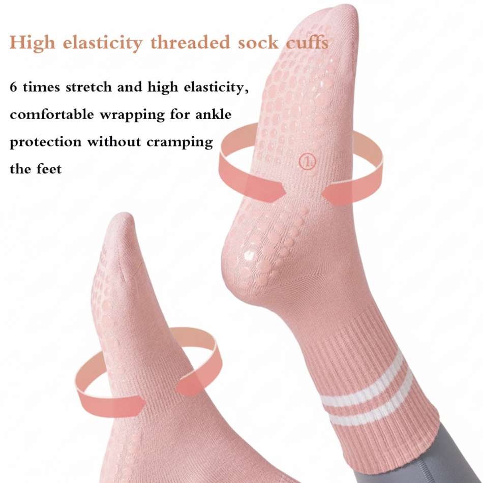 Made from a soft, breathable cotton-blend, these non-slip socks feature a high-quality silicone grip pattern that provides reliable traction on mats, wooden floors, and studio surfaces. Whether you’re holding a plank, flowing through yoga sequences, or working on precise Pilates control, these socks offer enhanced balance, better foot alignment, and a more confident practice.