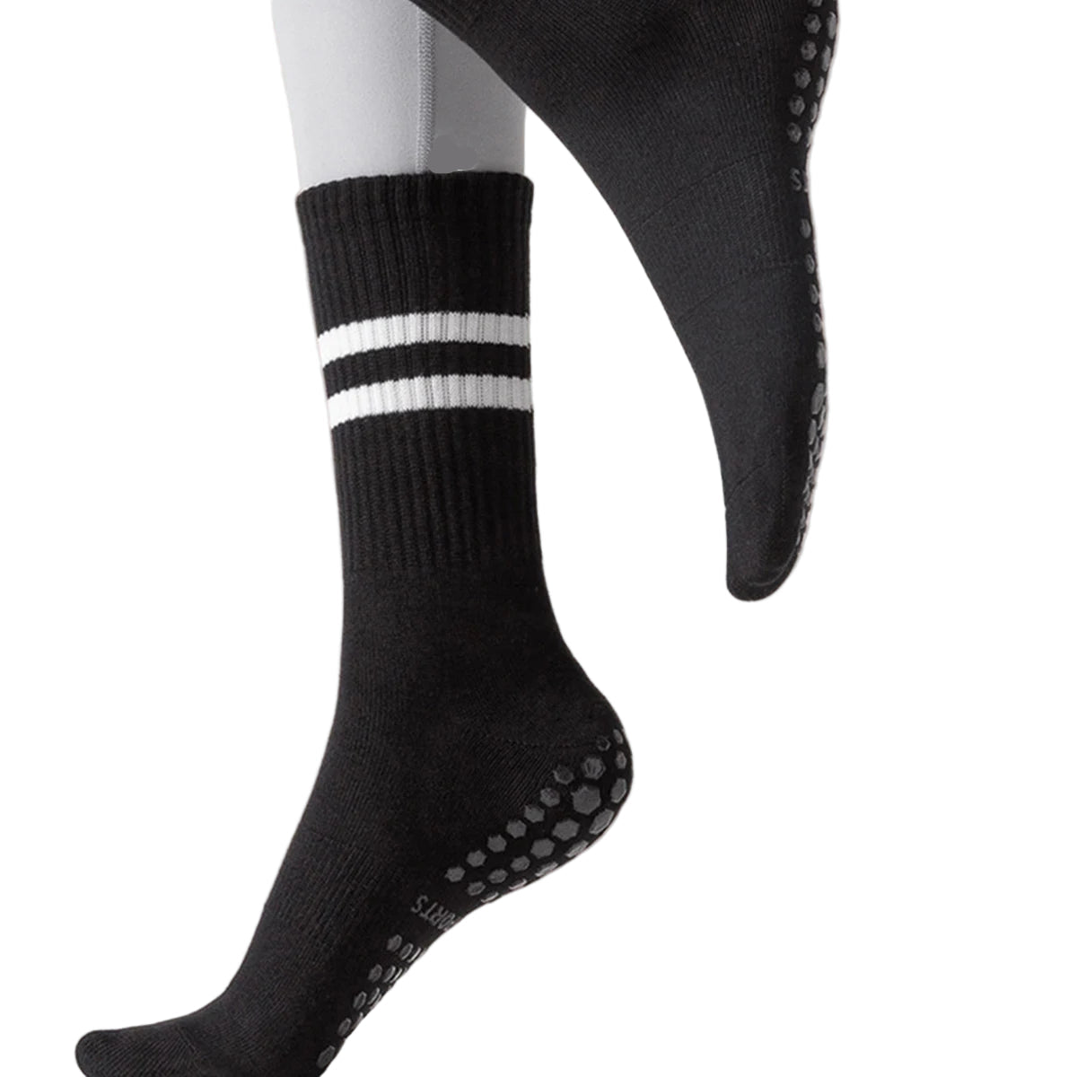 With a snug yet flexible fit, they stay comfortably in place without cutting in or rolling down. Ideal for hygiene in shared studios and perfect for low-impact training, stretching, and everyday wear around the house, these socks support you with every step, stretch, and stretch.